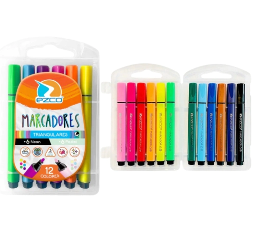 MARCADORES TRIANGULARES X12 COLORES